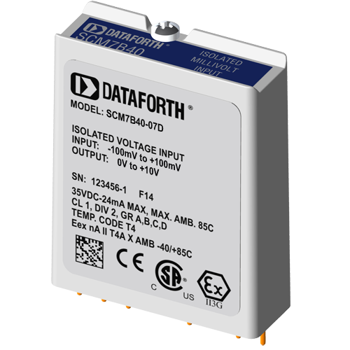 Each SCM7B40/41 voltage input module accepts one channel of analog voltage input which is filtered, isolated, amplified, and converted to a high-level analog voltage for output to the process control system.These modules incorporate a five-pole filtering approach to maximize both time and frequency response by taking advantage of both Thomson (Bessel) and Butterworth characteristics. One pole of the filter is on the field side of the isolation barrier; four are on the process control system side.